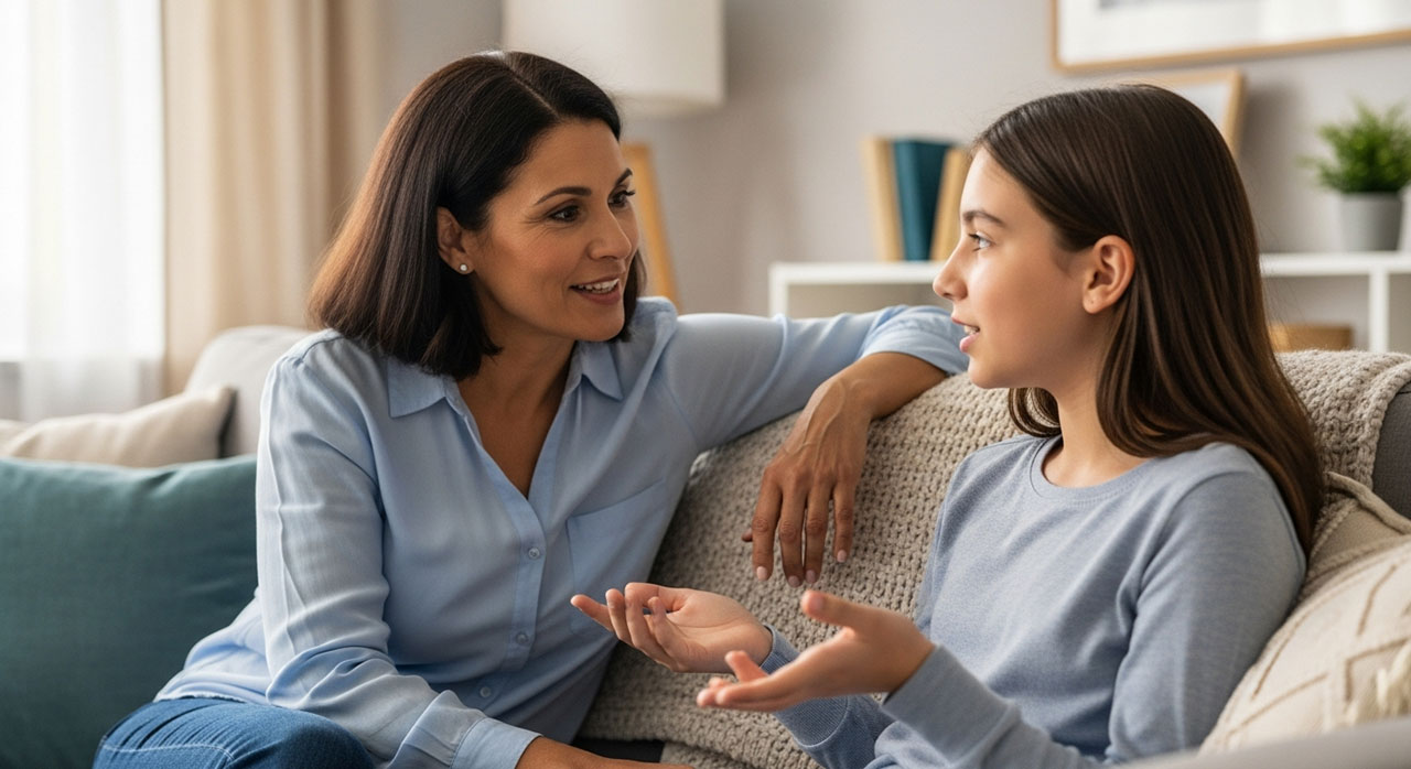 وقتی با نوجوانتان صحبت میکنید، روی رفتار اشتباه (دروغ گفتن) تمرکز کنید، نه بر شخصیت او. از به کار بردن کلماتی مثل “دروغگو” یا “غیرقابل اعتماد” جدا خودداری کنید. این برچسبها به عزت نفس او آسیب میزند و تغییر را برایش سختتر میکند.